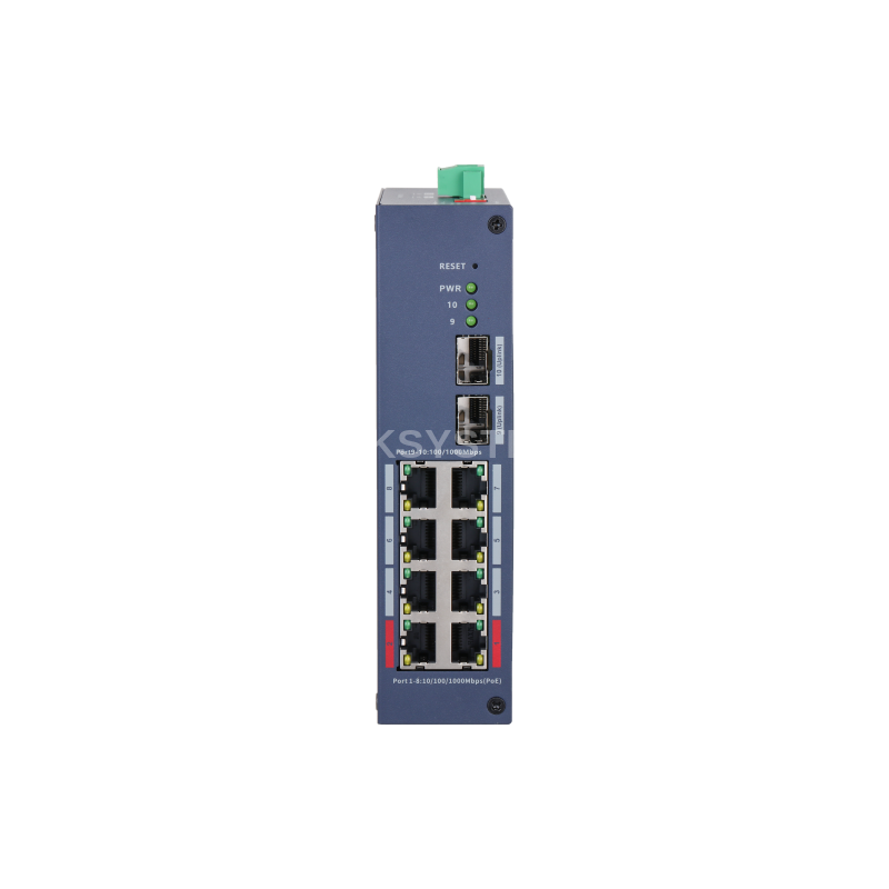 Порт 1–8: 8 × RJ-45 10/100/1000 Мбит/с (PoE) Порт 9–10: 2 × SFP 100/1000 Мбит/с (восходящий канал) |