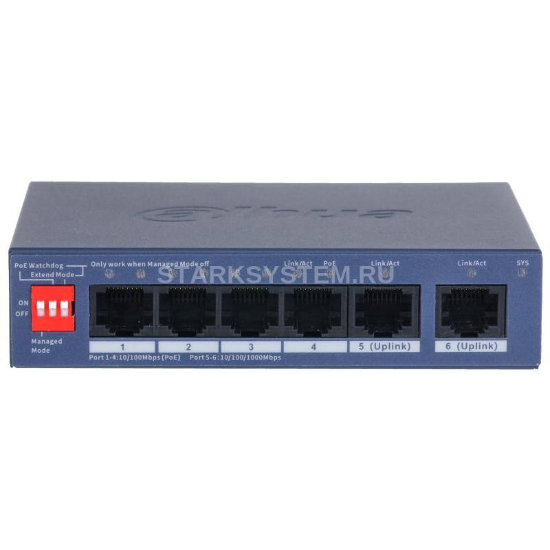 4 порта PoE RJ-45 10/100 Мбит/с, 2 гигабитных порта RJ-45. Общий бюджет PoE 36 Вт, 802.3af/ at на всех портах PoE. DIP-переключатель для быстрого включения/выключения режима работы управляемого облаком PoE Watchdog на большие расстояния PoE. Широкий диапазон рабочих температур от 10 ° C до 55 ° C. Поддерживает VLAN и защиту от контуров. Веб-управление и централизованное облачное управление через приложение DoLynk, а также мониторинг сети в режиме реального времени. Простая настройка для автоматического обнаружения и установки сетевых систем и систем безопасности.