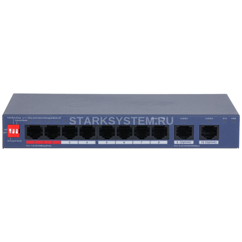 10-портовый настольный коммутатор с облачным управлением и 8 портами PoE.