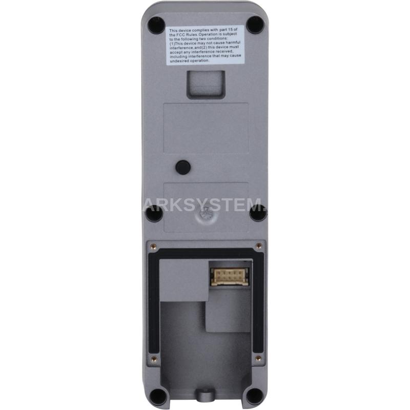 Вызывная панель Dahua DHI VTO2311R WP оснащена IP-камерой с углом обзора 110 градусов и разрешением 2 мп (1920х1080). Чувствительная CMOS-матрица, ИК-подсветка, широкий динамический диапазон WDR и функция шумоподавления гарантируют HD-качество картинки – детализированную, четкую, без пересветов в ночное время и на свету. Панель для домофона рассчитана не только на открытие двери и отправку изображения, но и на обмен голосовыми сообщениями. Работает по Wi-Fi. Принимать сигналы можно как на мониторе видеодомофона, так и через приложение на смартфоне. Также можно просматривать оставленные видеосообщения и делать автоматические снимки (устройство поддерживает MicroSD карту до 256 Гб). Дверь открывается при получении сигнала с монитора, через мобильное приложение или при прикладывании карты. Диапазон считывания достигает 3 см. Домофонная панель вызова «Дахуа» DHI VTO 2311 R WP рассчитана для установки как на дверь квартиры, так и на улицу: высокий класс пылевлагозащиты IP65 (с применением силиконового герметика), корпус из поликарбоната и АБС пластика и механическая кнопка выдержат температуру от -40 до +60°C, конструкция минималистичная, ультратонкая, есть защитный козырек от осадков и прямых солнечных лучей. Монтаж накладной, размеры 16х5х3 см, в комплект входит схема подключения и инструкция на русском языке.