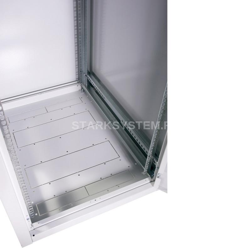 Шкаф имеет 4 оцинкованные вертикальные направляющие, регулируемые по глубине. Система заземления входит в стандартную комплектацию.