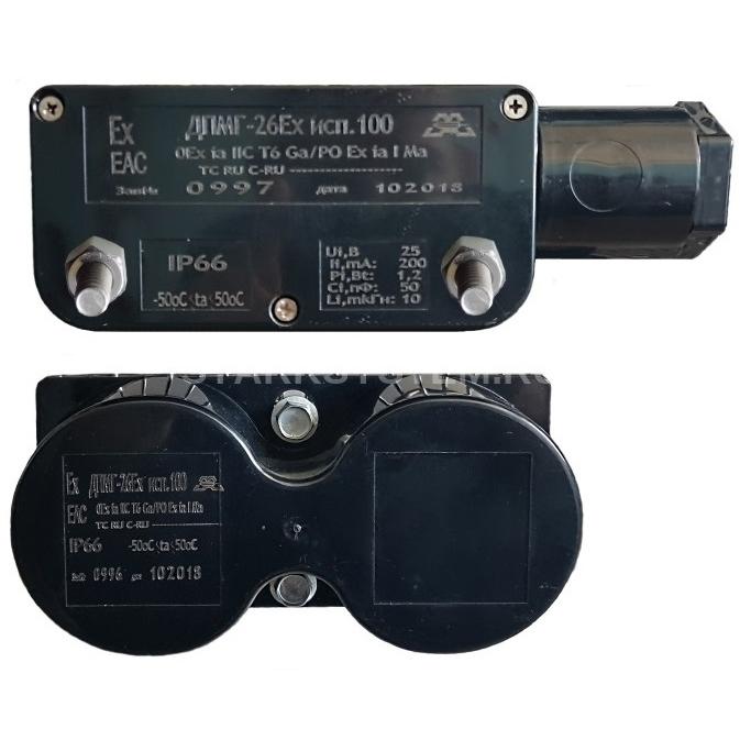 - Контакты датчика ДПМГ-26Ех исп.100 гарантированно замыкаются при расстоянии между датчиком и магнитом 100 мм и гарантированно разомкнуты на расстоянии 160 мм.