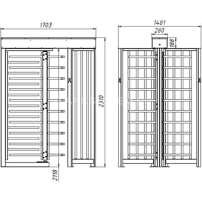 | габаритные размеры турникета, ДхШхВ | 1481х1702х2310 мм |