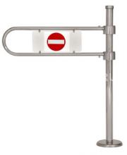 Ростов-Дон ОК61 хром - ограждение-калитка, предназначено для формирования потоков людей. Оно не имеет механизма возврата дуги. Вместо этого имеется 4 фиксированных положения дуги через угол 90º, в каждом из которых дуга ограждения-калитки может стопориться. На пластиковой вставке с двух сторон изображен знак запрета прохода. Корпус калитки изготовлен из хромированной стали.