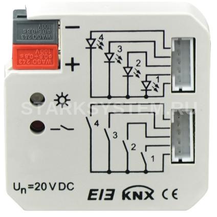 BAS-IP KM-01 - 4 канальный универсальный интерфейс. Включение, выключение и диммирование. Управление жалюзи и шторами. Напряжение питания: +21-30 В. Температурный режим: -5 .. +45 °C. Размер: 46x46x12 мм.