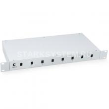 Высота: 1U Тип установки: шкаф или стойка 19” Тип адаптера: SC/2xLC Количество портов: 8 Материал кросса: сталь 1мм Цвет: светло-серый (RAL 7035) Размеры с полкой (ШхГхВ), мм: 410х200х44 Максимальный диаметр кабеля: 20мм (16мм при использовании манжеты) Упаковка: индивидуальная картонная коробка Масса: 2,3 кг Комплектность поставки (кросс в сборе): Сплайс-кассета: 1шт (24 КДЗС) Кронштейны 19” крепежа: 2шт (4 винта в комплекте) Количество кабельных вводов: 4шт Стяжка нейлоновая: 6шт Гильза КДЗС, 60мм: 8шт Винтики для крепления адаптеров: 16шт Комплект крепежа для 19" направляющих - 4 шт