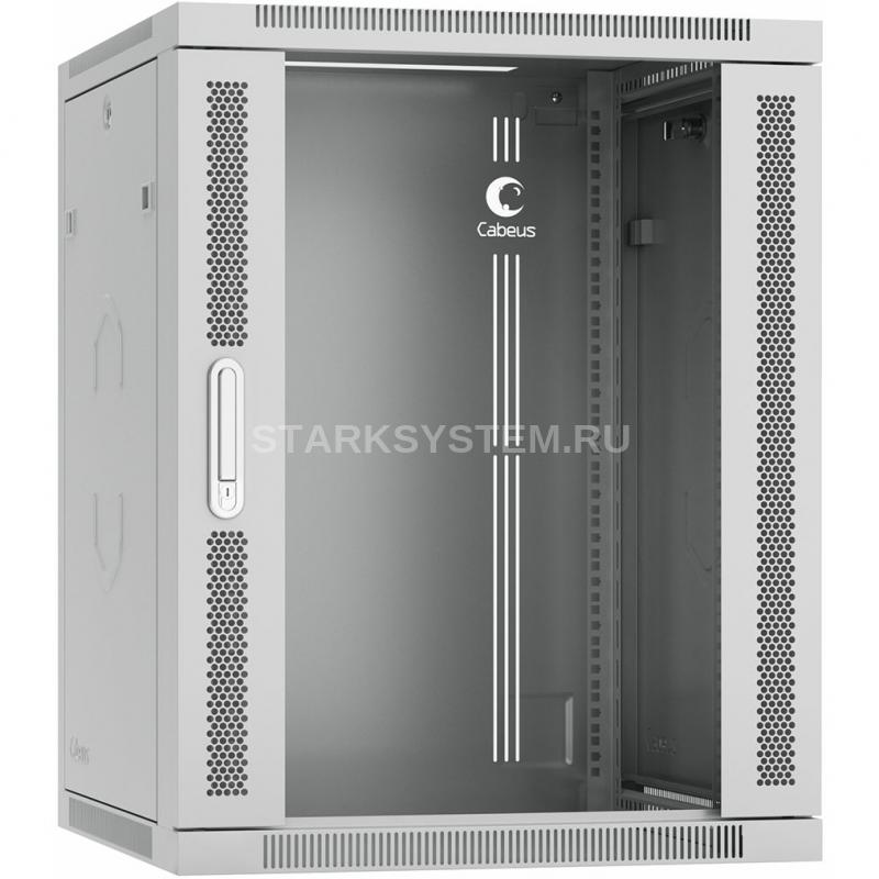 Cabeus SH-05F-15U60/35 Шкаф телекоммуникационный настенный 19" 15U 600x350x769mm (ШхГхВ) дверь стекло, цвет серый (RAL 7035)
