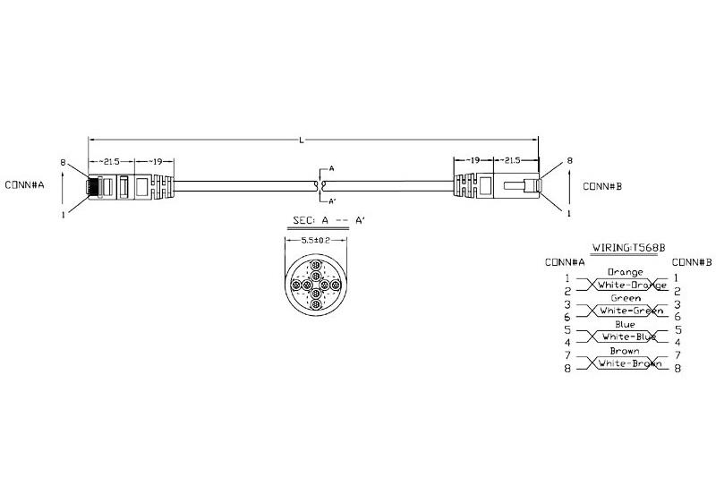 - Цвет витых пар: синий-белый/синий, оранжевый-белый/оранжевый, зеленый-белый/зеленый, коричневый-белый/коричневый