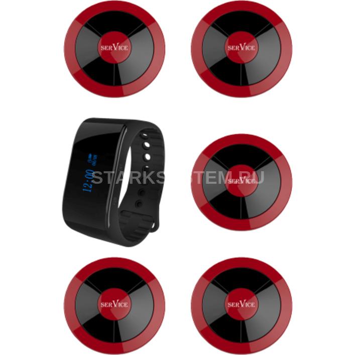 1. Состав комплекта Комплект системы вызова персонала включает в себя: влагозащищённый наручный пейджер iBells 69 и 5 влагозащищённых кнопок вызова iBells 315 (вишня). Комплект подойдет для любого заведения, где может потребоваться вызов персонала посетителями: в кафе, ресторане, отеле, фитнес центре, в супермаркете или магазине одежды, в медицинском учреждении и тд. Также система подходит для организации связи между персоналом. 2. Принцип работы При настройке системы каждая кнопка подключается к пейджеру под определенным номером. При необходимости посетитель нажимает на кнопку, и ответственный сотрудник получает вызов. 3. Преимущества системы - Беспроводные системы iBells помогают решить проблемы сервиса -повышают качество и скорость обслуживания. - Оборудование работает по радиосвязи, сигнал свободно проходит по всем помещениям. - В кнопках и пейджере предусмотрено автономное питание — никакой проводки не требуется. - Систему легко масштабировать и совершенствовать. Достаточно добавить дополнительные кнопки вызова и приёмники (пейджеры, табло, пульты). 4. Настройка и установка Пейджер легко программируется по инструкции. Кнопка вызова не требует сложной установки и специального монтажа- крепится на двусторонний скотч.