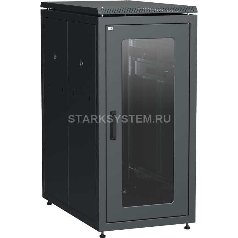 Шкаф сетевой напольный 19" LINEA N 18U 600х1000мм, стеклянная передняя дверь, черный.