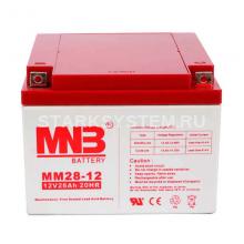 Свинцово-кислотный аккумулятор MNB MM 28-12 ёмкостью 28 Ач и напряжением 12 В выпускается в прочном герметизированном корпусе из ABS-пластика. Внутри поддерживается давление, необходимое для рекомбинации газов. На крышке предусмотрен односторонний VRLA-клапан, сбрасывающий избыточное давление. Аккумулятор MNB MM 28-12 разработан по технологии AGM — жидкий электролит удерживается внутри мелкопористых стекловолоконных сепараторов.