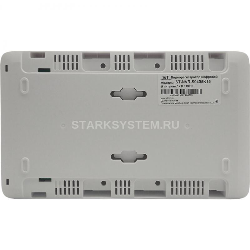 Видеорегистратор ST-NVR-S0405K15. Цифровой, режим работы:4 IP (5Mp). Всего видеовыходов: 1 (HDMI), HDMI 1920×1080, 1280×720, 1024×768, 1366×768, 1440×900, 1280×800. Поддерживаемые видеокодеки: S+265/H.265/H.264. Поддерживаемые аудиокодеки: G.711A / G.711U / ADPCM_DIV4. Запись IP камеры (разрешение / скорость): до 5 Mp (25 к/с (зависит от камеры)). 1 SATA 3.0 до 6Тб.