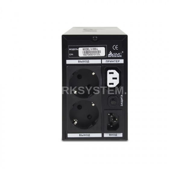 Линейно-Интерактивный ИБП SVC V-500-L - устройство, позволяющее подключенному оборудованию некоторое время работать от встроенных аккумуляторов, при пропадании электрического тока или при выходе его параметров за допустимые нормы. Кроме того, оно способно корректировать параметры (напряжение, частоту) электропитания. Часто применяется для обеспечения бесперебойной работы компьютеров.