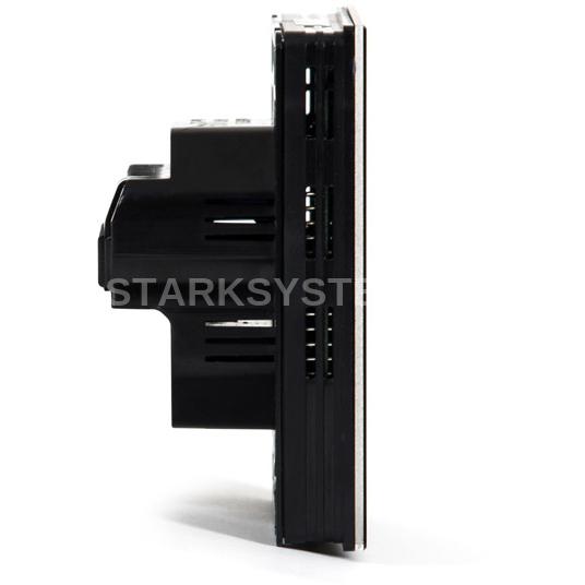 Встраиваемый программируемый термостат для электрического тёплого пола. Питание от сети — 220 В. Контакты реле — до 16 А. Температура регулировки — от 5°С до 70°С. Точность измерения — 0,1°С. Сенсорное управление. Встраиваемый корпус в подрозетник. Большой LCD-дисплей. Калибровка температуры. Установка индивидуальной программы для каждого дня недели. Установка ограничения максимальной и минимальной температуры. Установка яркости дисплея. Функция «умного» восстановления.