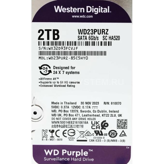 Накопители WD Purple предназначены для круглосуточной записи в системах видеонаблюдения. Эти диски разработаны специально для систем видеонаблюдения, поэтому они выдерживают сильные перепады температур и вибрации оборудования сетевого видеорегистратора. Обычно жесткие диски для настольных компьютеров создаются с прицелом на работу только в течение коротких промежутков времени, а не для жестких условий круглосуточной эксплуатации в системах видеонаблюдения высокой четкости. Жесткие диски WD Purple для систем видеонаблюдения проверены на совместимость с широким спектром систем обеспечения безопасности, благодаря чему вы можете быть уверены в надежности специализированного оборудования. Применение эксклюзивной технологии AllFrame дает возможность уменьшить потерю кадров и улучшить воспроизведение видео.