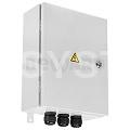 Дистанция передачи по оптоволокну с предустановленным модулем составляет 20 км при скорости трансляции 155 Мбит/сек. Оборудование внутри шкафа размещено на DIN рейке. Защита от попадания воды и пыли сертифицирована по стандарту IP54, на нижнем торце имеется три гермоввода для подключения кабелей.