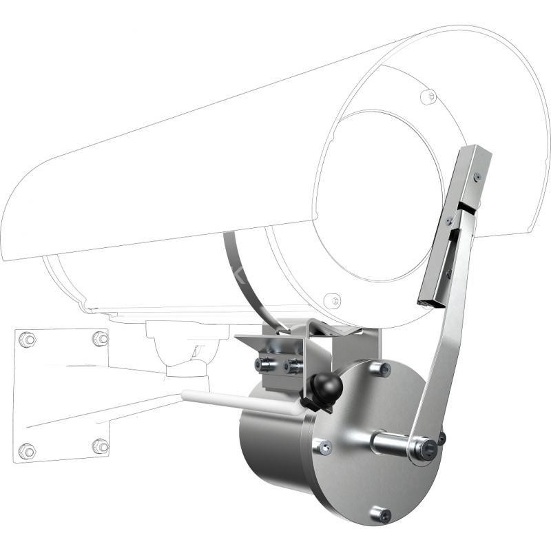 Комплект очистки стекла видеокамеры КОСВН. Комплект очистки стекла видеокамеры КОСВН предназначен для очистки стекла термокожуха видеокамеры от воды, снега и загрязнений с помощью механической щетки с использованием омывающей жидкости в условиях морского климата, химических производств, автомагистралей, тоннелей и прочих агрессивных сред. Входящий в состав комплекта стеклоочиститель СО-1 Ex предназначен для установки в наружные пространства и внутренние пространства помещений, порты, рудники и шахты, классифицированные как взрывоопасные зоны классов 1 и 2 (при классификации по зональному принципу), где возможно образование взрывоопасных газовых смесей категории IIА, IIВ и IIC групп взрывоопасности Т1-Т6 или взрывоопасные зоны класса В-1, В-1а, В-1б, В-1г согласно гл.7.3 ПУЭ. СО-1 Ex выполнен в виде взрывонепроницаемой оболочки по ГОСТ 31610.0 (IEC 60079-0), ГОСТ IEC 60079-1 с маркировкой взрывозащиты РВ Ex db I Mb X / 1Ex db IIC T6 Gb X / Ex tb IIIС T85°C Db Х cо степенью защиты обеспечиваемой оболочкой – IP66/IP67 и по уровню защиты относится к взрывобезопасному электрооборудованию. Установка шкафа во взрывоопасных зонах запрещена! Климатическое исполнение изделия соответствует УХЛ1,5 ГОСТ 15150. СО-1 Ex выпускается по техническим условиям ТУ 26.30.50-079-31006686-2018. Остальные элементы комплекта выпускаются по техническим условиям ТУ 26.30.50-077-31006686-2017. Состав КОСВН: